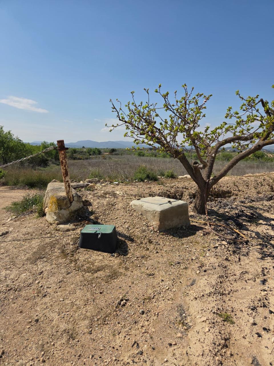 Además, la finca cuenta con 2 arquetas de agua, garantizando suministro para el riego y mantenimiento del terreno.